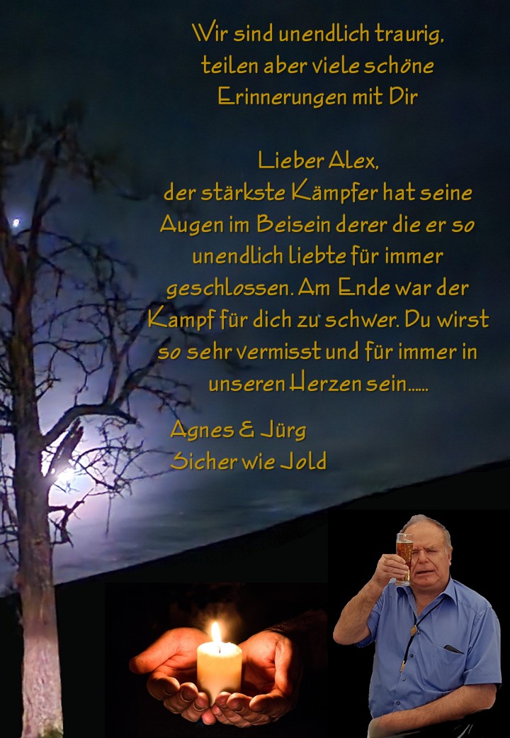 Lieber Ejj. Alex, wir Danke Dir für die vielen schönen Momente die wir mit Dir erleben durften.